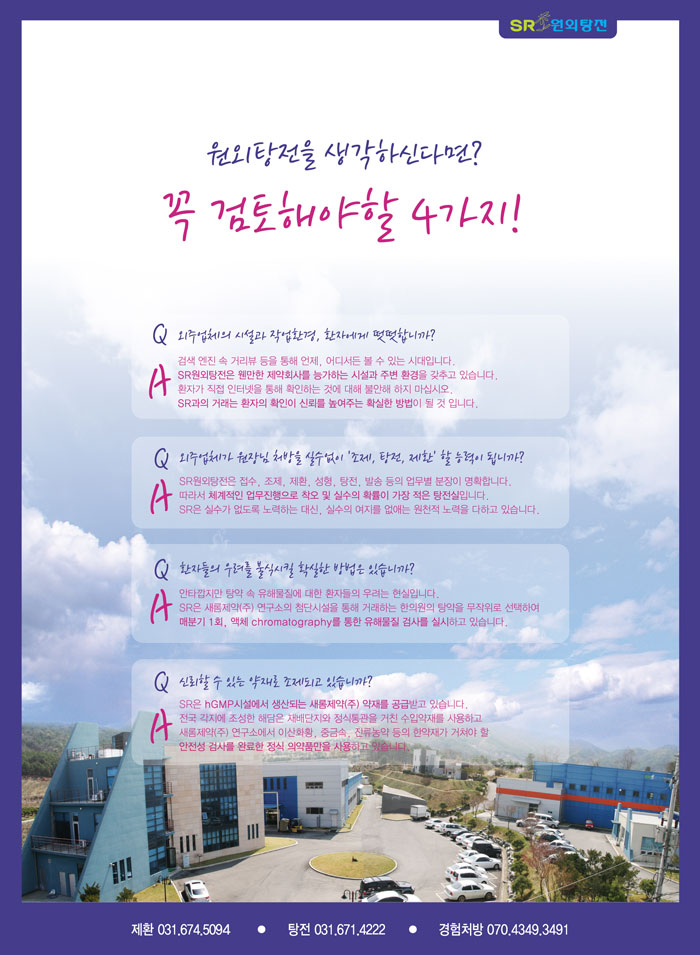 ¢º SR¿ø¿ÜÅÁÀüÀº HGMP½Ã¼³¿¡¼ »ý»êµÇ´Â »õ·ÒÁ¦¾à(ÁÖ) ¾àÀ縦 °ø±Þ¹Þ°í ÀÖ½À´Ï´Ù.